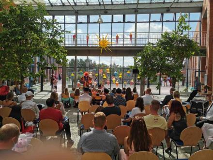 Stattdessen konnten unsere neuen Schüler in unserem Foyer einen Clown mit einem kleinen Einstimmungsprogramm erleben.