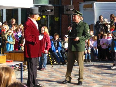 Zahlreiche Marktstände wurden auf dem wunderschön gestalteten Schulhof aufgebaut und boten u.a. mit alten Pausenspielen, Lederarbeiten, Murmel- und Hopsspielen, dem Abwerfen von Holzstücken (einer Vorform des Büchsenwerfens), "Trieseln“ und dem Schulunterricht wie er früher war, einen interessanten Einblick in die Schulzeit der Groß- und Urgroßeltern unserer Schülerinnen und Schüler. Zur Überraschung vieler traten einige Lehrer und Erzieher in historischen Kleidern auf, wie sie in den unterschiedlichen Schichten zu Beginn des letzten Jahrhunderts modern waren. Auch ein historisches Karussell, Zuckerwatteverkauf, Theaterspiel und Drehorgel sowie eine Zaubervorstellung und das Reiten auf einem Esel gehörten ebenso wie historische Polizeiwagen zum Programm.