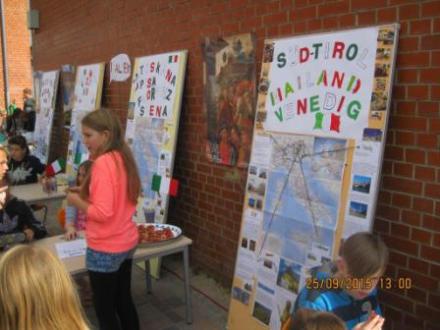 Den Abschluss der Feierlichkeiten bildete das Schulfest für unsere Kinder und ihre Eltern. Dieses begann mit einem wunderschönen Aufstieg von Luftballons mit unserem Schullogo. Mit dem Thema „Wir in unserer Schule“ beschäftigten sich die Kinder der Schulanfangsphase und mit „Wir in Europa“ die Schülerinnen und Schüler aus den 3. bis 6. Klassen, indem sie zahlreiche Stände organisierten, an denen sie u.a. verschiedene europäische Länder vorstellten. Bei europäischen kulinarischen Verlockungen konnte man sich auf selbstgefertigten Plakaten oder beim Wissensquiz über die Länder informieren oder Kinderspiele aus unseren Nachbarländern ausprobieren. Kinder und engagierte Eltern u.a. aus dem Refugium Buch beteiligten sich mit originalen Köstlichkeiten der afghanischen Küche und mit einem Bauchtanz. Auch zwei Hüpfburgen, ein Wabbelberg und andere Spaßangebote standen den Kindern zur Verfügung. Ein besonderer Höhepunkt waren die Umzüge unserer Kinder durch das angrenzende Wohngebiet mit „Dudel-Lumpi“.