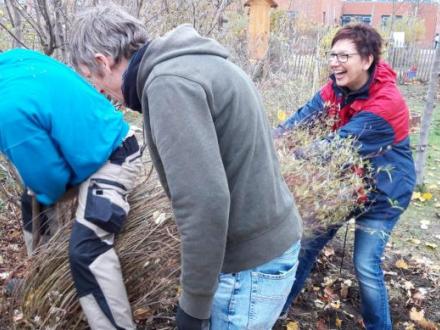 Im Herbst wird mit großer Unterstützung von Eltern, Kindern und Erzieherinnen und Erziehern unser Schulgarten winterfest gemacht.