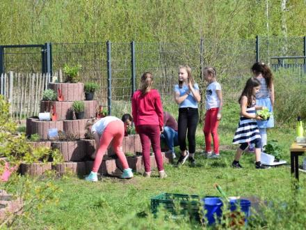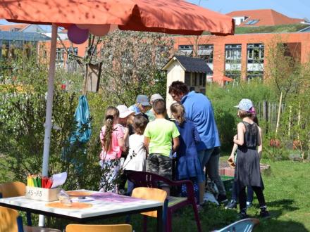 Seit mehreren Jahren werkeln und pflanzen die Kinder gemeinsam mit den Erziehern im Schulgarten und verwandelten diesen in ein kleines Biotop. In verschiedenen Projekten entstanden ein Insektenhotel, verschiedene Gemüsebeete und ein Lebensraum für unsere Eidechsen.