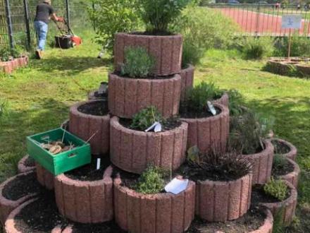 Seit mehreren Jahren werkeln und pflanzen die Kinder gemeinsam mit den Erziehern im Schulgarten und verwandelten diesen in ein kleines Biotop. In verschiedenen Projekten entstanden ein Insektenhotel, verschiedene Gemüsebeete und ein Lebensraum für unsere Eidechsen.