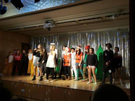 Nach einem stimmungsvollen Weihnachtsbasar im wunderschön dekorierten Foyer, wurde auch in diesem Jahr ein Weihnachtsrevue aufgeführt. Wie in allen bisherigen Aufführungen der Weihnachtsrevue, wurde auch in diesem Jahr die Aufführung unserer Schülerinnen und Schüler mit einer ganz neuen Geschichte verknüpft.